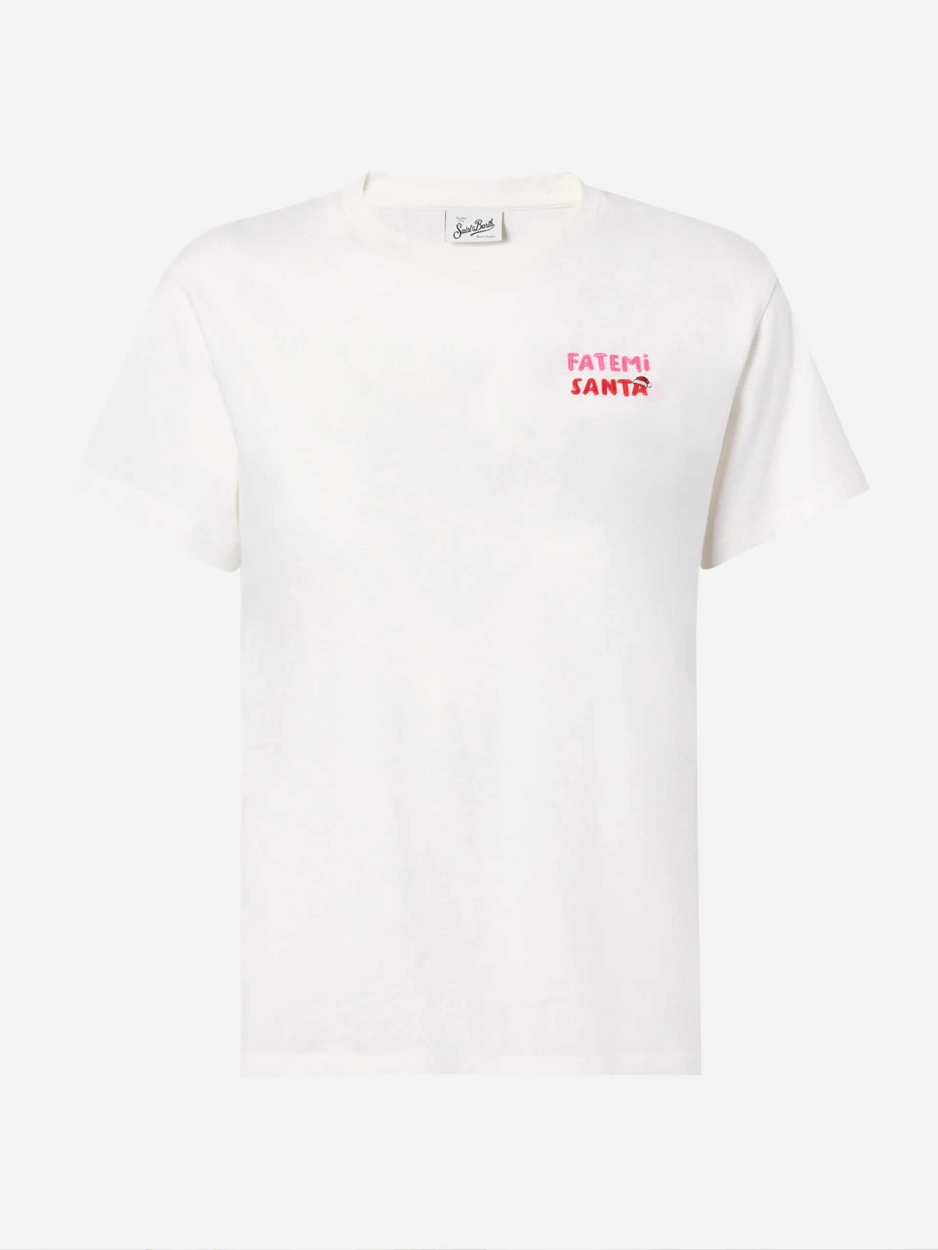 MC2 Saint Barth – T-Shirt Emilie in cotone bianco con ricamo Fatemi Santa