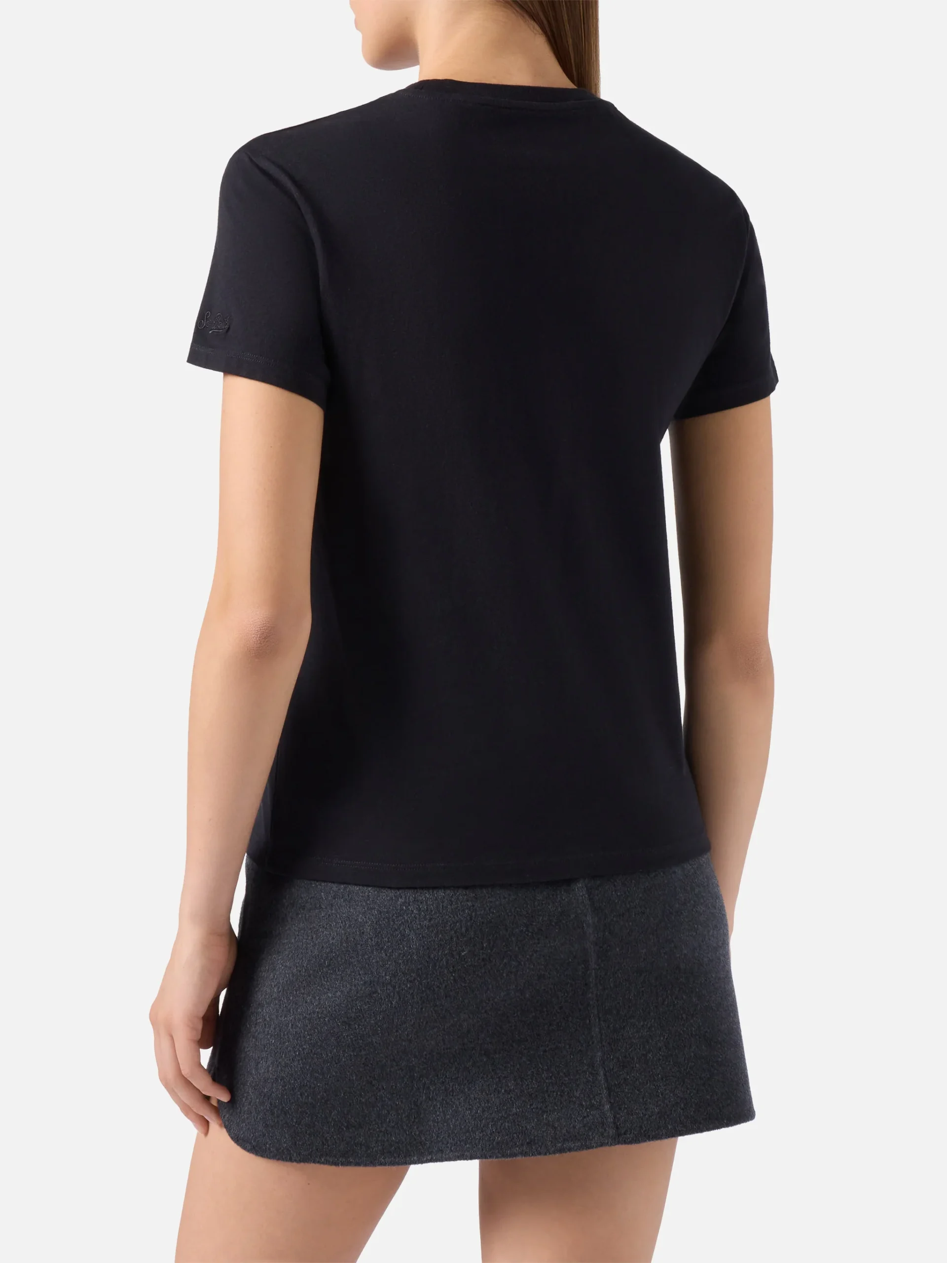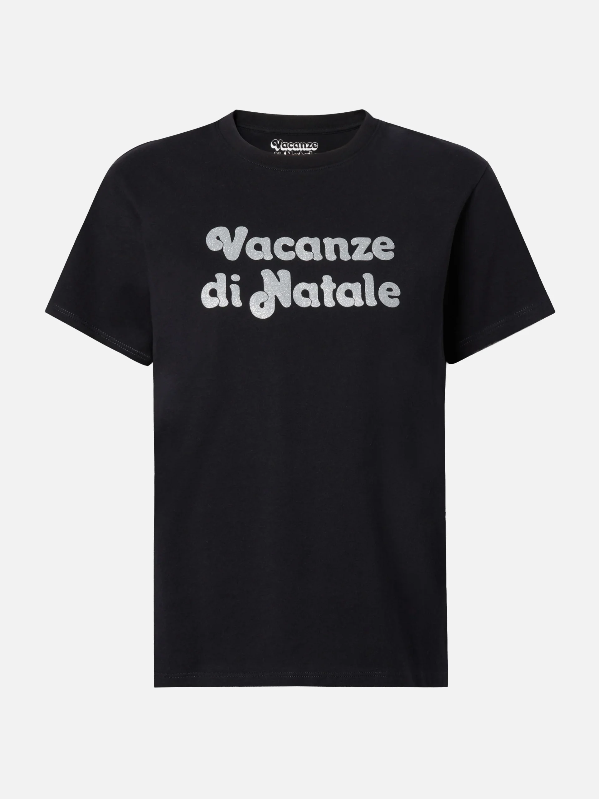 T-shirt in jersey di cotone nero Girocollo Stampa glitter Vacanze di Natale